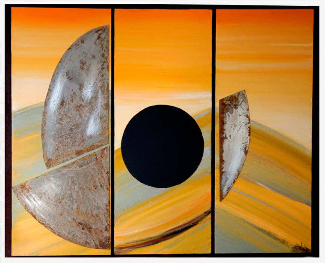 Pintura al óleo y hierro sobre madera. 170×120 cm. Homenaje a Jorge Oteiza