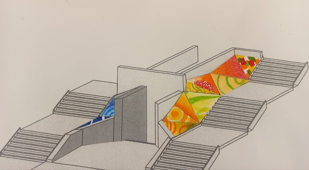 Comienzo un nuevo proyecto ilusionada en Irala, con murales en el suelo, para sumar color a la nueva reforma urbana. 4 espacios expresando las estaciones del año.